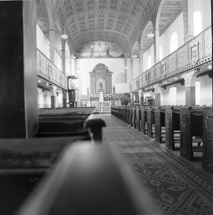 ławy ; kolumny ; obrazy ; malowidła ścienne ; sztukateria ; ambona ; ołtarz